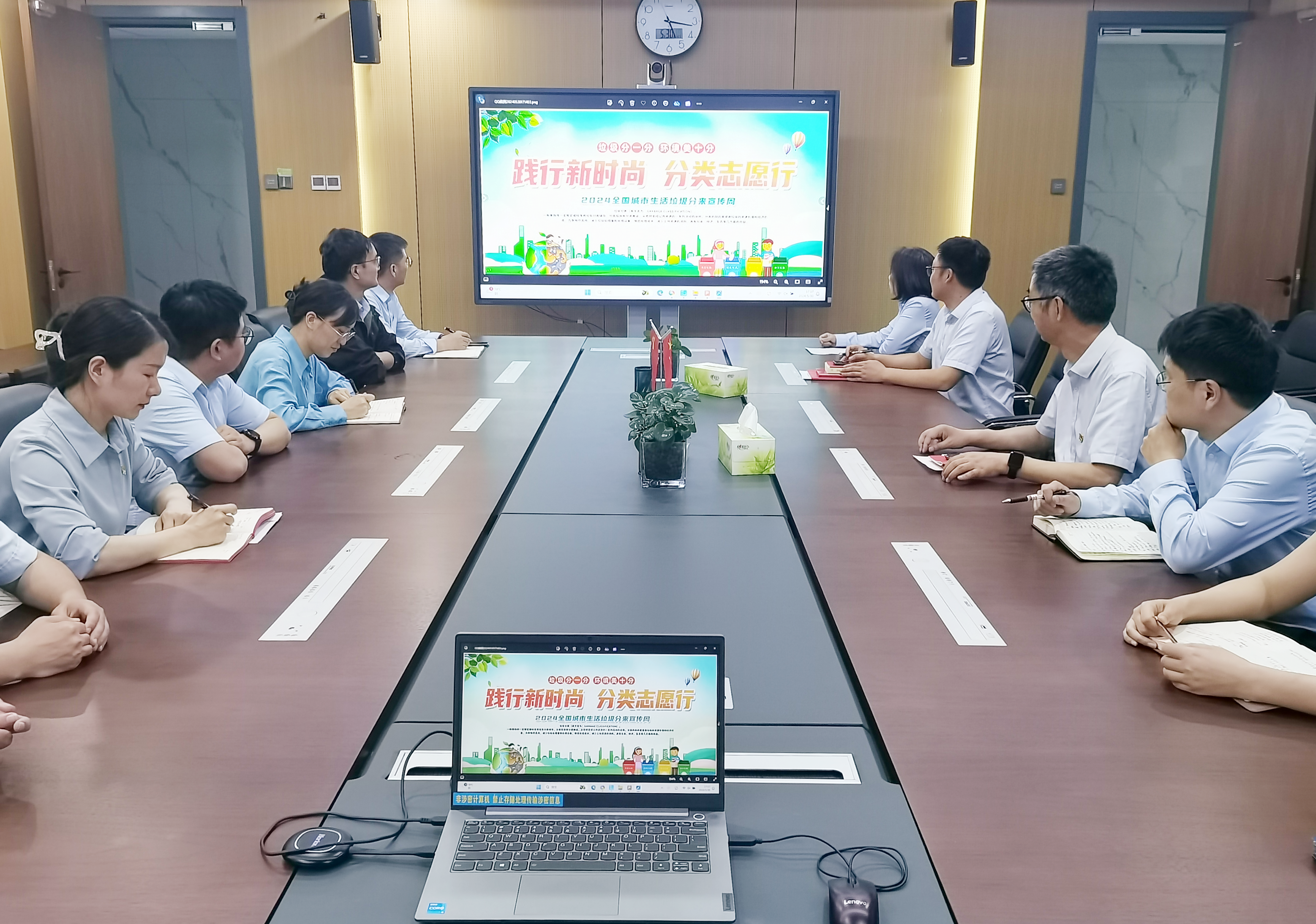 首先,制作垃圾分類宣傳APP、印發(fā)生活垃圾分類投放指南和投放指引等宣傳材料在全體職工中開展廣泛宣傳,組織職工觀看《十四億分之一的堅持》和《我想對你說》等專題宣傳教育片等,讓全體員工充分了解垃圾分類的重要性必要性和正確的分類方法,倡議職工通過QQ、微信和抖音等平臺進一步擴大宣傳范圍,帶動家人、朋友和身邊人從自身做起、從點滴做起,共同參與到垃圾分類的宣傳和實際行動中來。