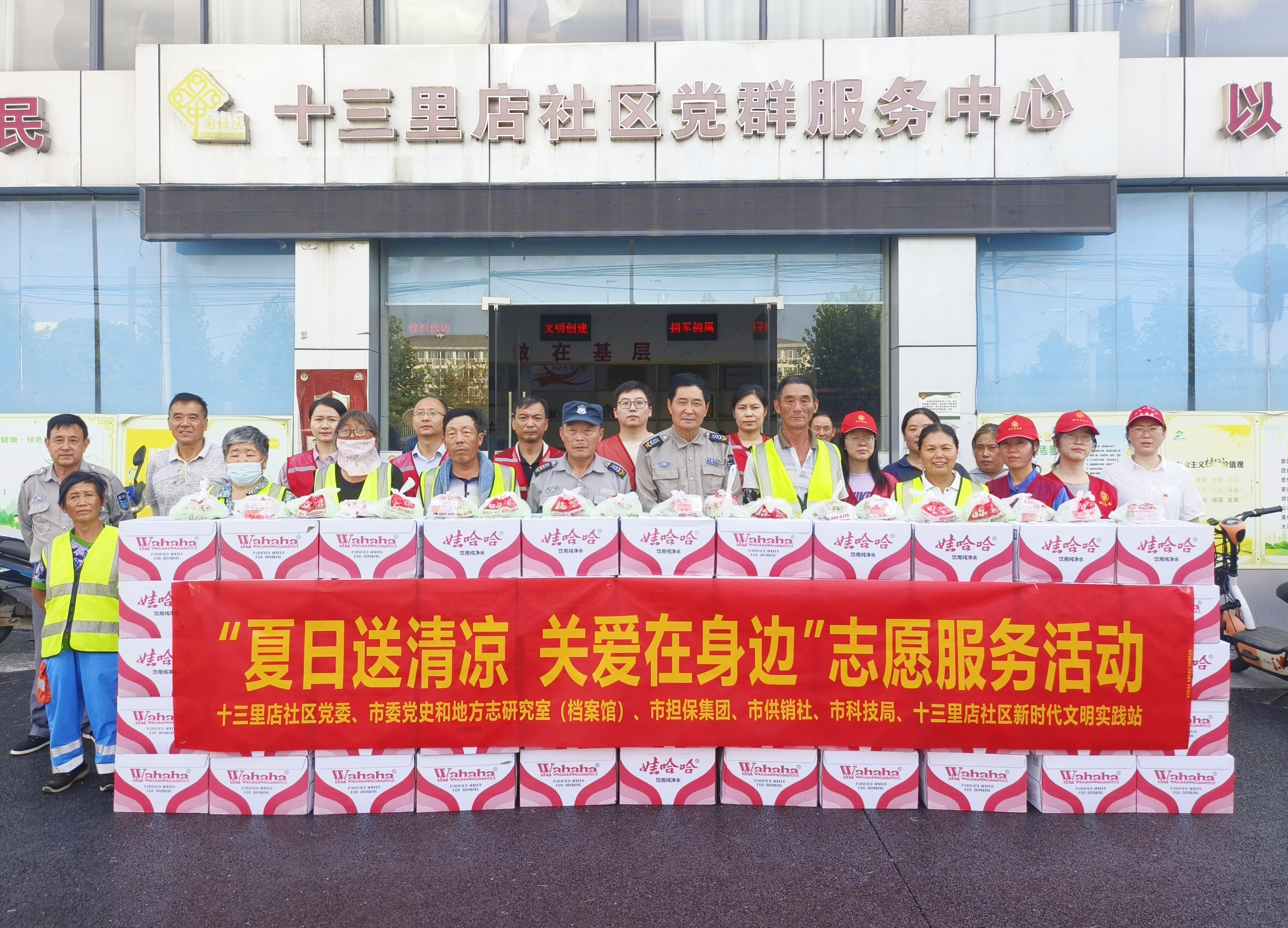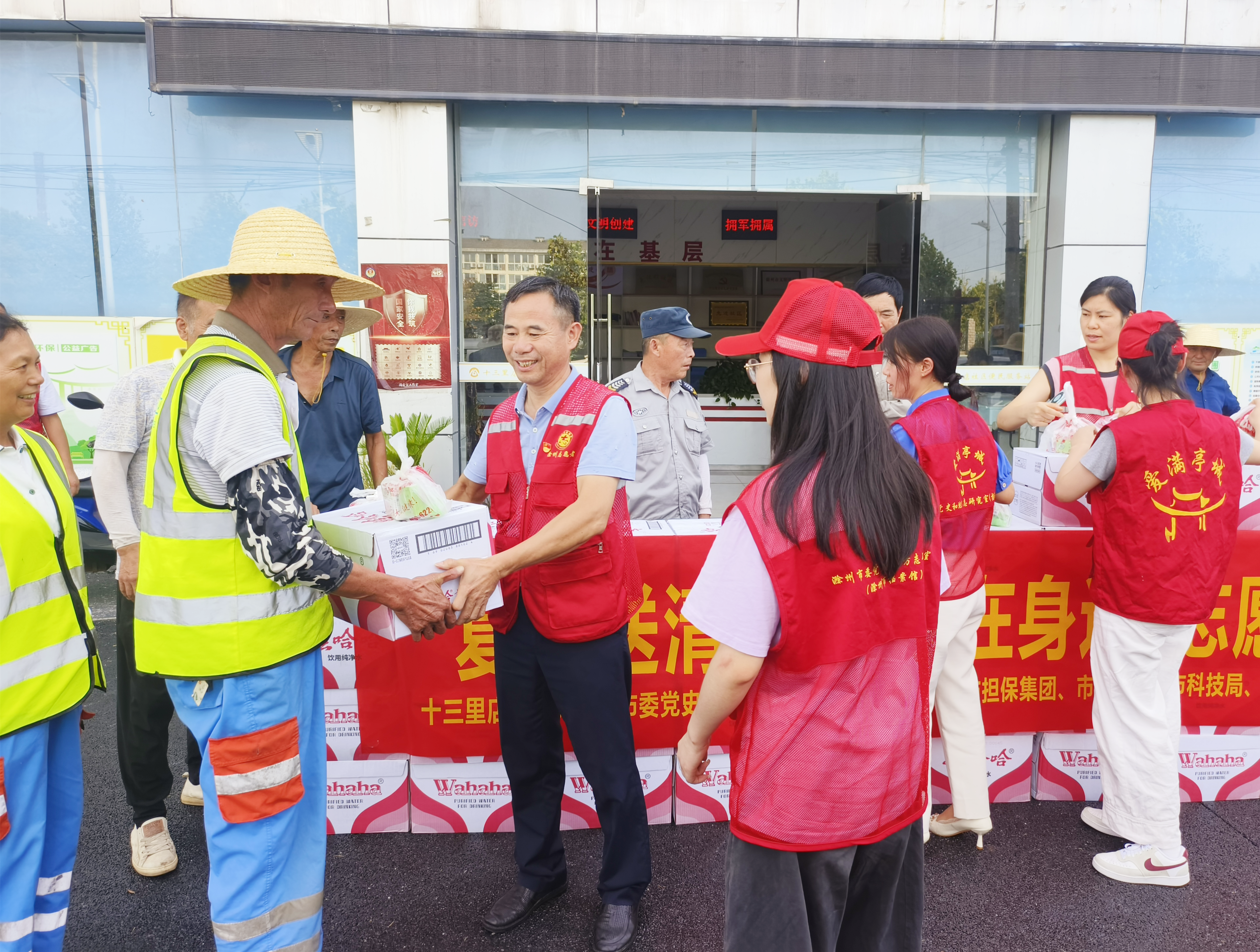 2024年8月12日,集團(tuán)黨支部和普惠擔(dān)保公司黨支部的黨員志愿者們來(lái)到十三里店社區(qū)黨群服務(wù)中心,與包保社區(qū)的其他黨員志愿者一起,將精心準(zhǔn)備的礦泉水、香皂、風(fēng)油精、花露水等防暑降溫物品一一分送到社區(qū)每一名環(huán)衛(wèi)工人手中,并叮囑環(huán)衛(wèi)工人們高溫作業(yè)要注意防暑降溫,加強(qiáng)自我防護(hù),確保自身安全。
