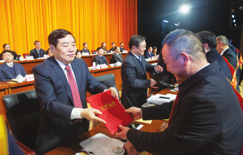 市領(lǐng)導(dǎo)為2021年全市新獲評(píng)省級(jí)以上高層次人才代表頒發(fā)榮譽(yù)證書。