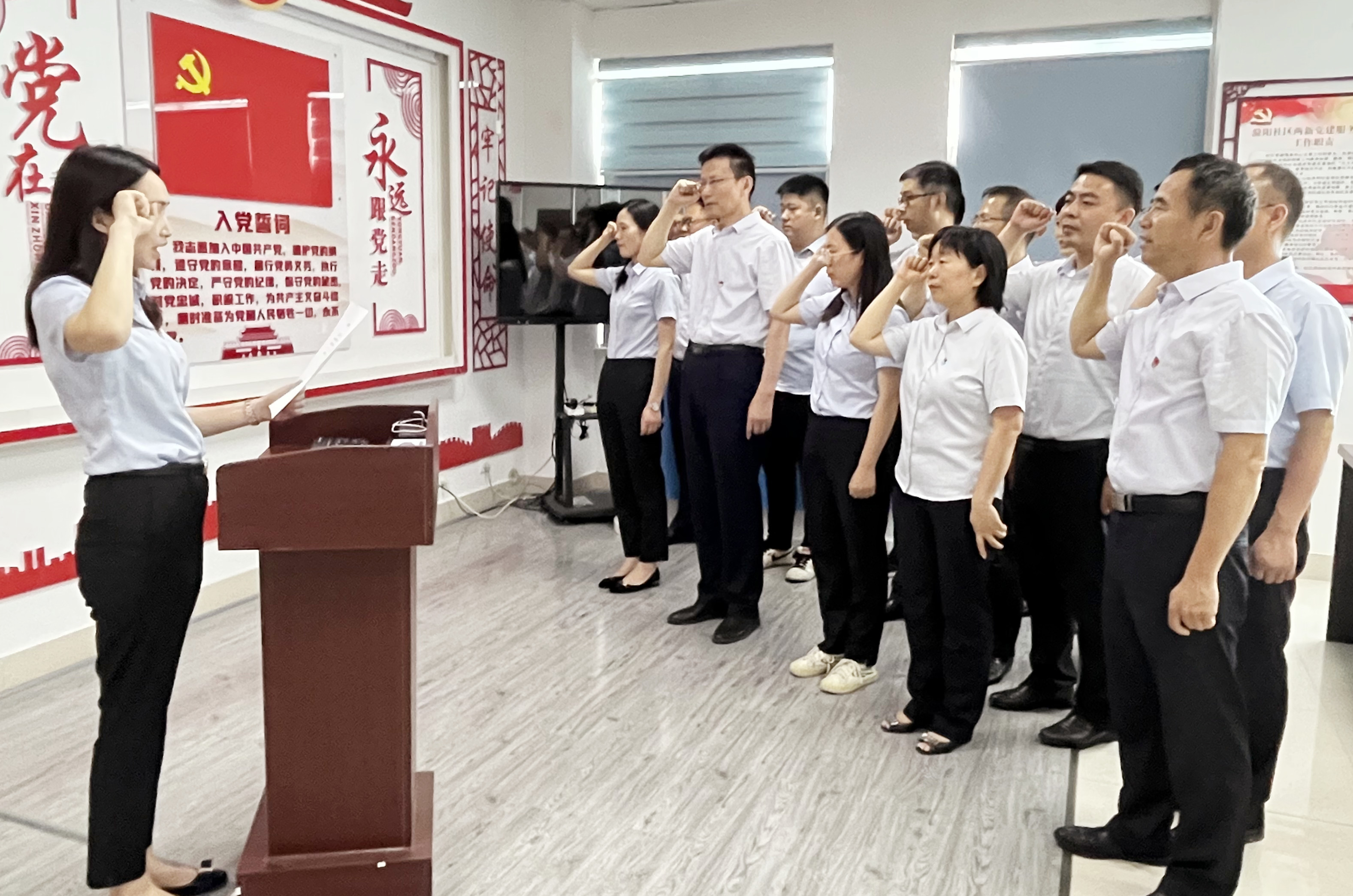 在活動(dòng)現(xiàn)場(chǎng),講解員引導(dǎo)大家邊觀看視頻和圖文資料,邊詳細(xì)解說(shuō)相關(guān)內(nèi)容,從五個(gè)方面講述了中國(guó)共產(chǎn)黨建黨前的時(shí)代背景、中共一大召開(kāi)時(shí)的情景以及紅船精神的內(nèi)涵和意義。全體黨員認(rèn)真觀看、仔細(xì)聆聽(tīng)、深入思考,深刻地領(lǐng)悟了中國(guó)共產(chǎn)黨開(kāi)天辟地、敢為人先的首創(chuàng)精神;堅(jiān)定理想、百折不撓的奮斗精神;立黨為公、忠誠(chéng)為民的奉獻(xiàn)精神。增強(qiáng)了對(duì)“紅船精神”是中國(guó)革命精神之源的理解和認(rèn)識(shí)?;顒?dòng)中,全體黨員還面對(duì)黨旗,重溫了入黨誓詞。
